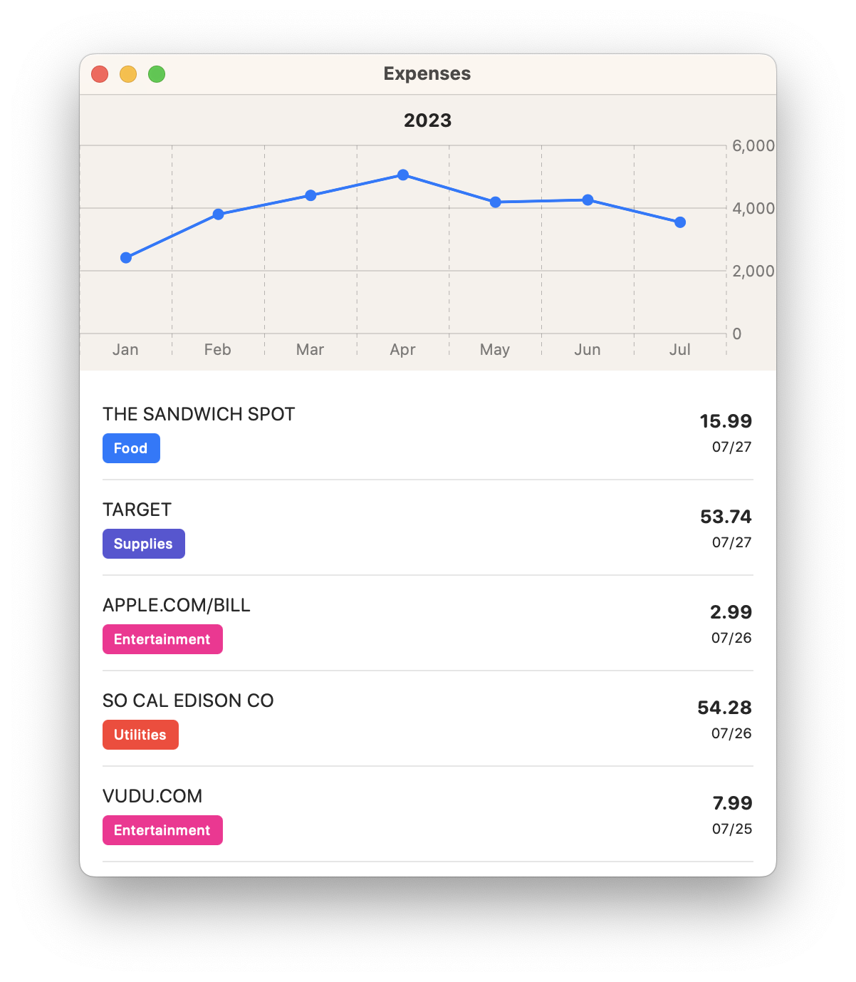 - By importing my expenses from my bank accounts directly into a local database that I manage, I'm able to query that database in as many ways as I'd like. I can ask my database questions about my expenses in ways that available apps simply do not support.